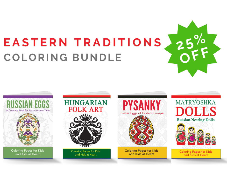 This fun pack of coloring books is based on designs drawn from the centuries-old traditions of Eastern Europe--from decorated eggs to folk designs and nesting dolls. Grab your crayons, markers, or colored pencils and embark on a creative journey!