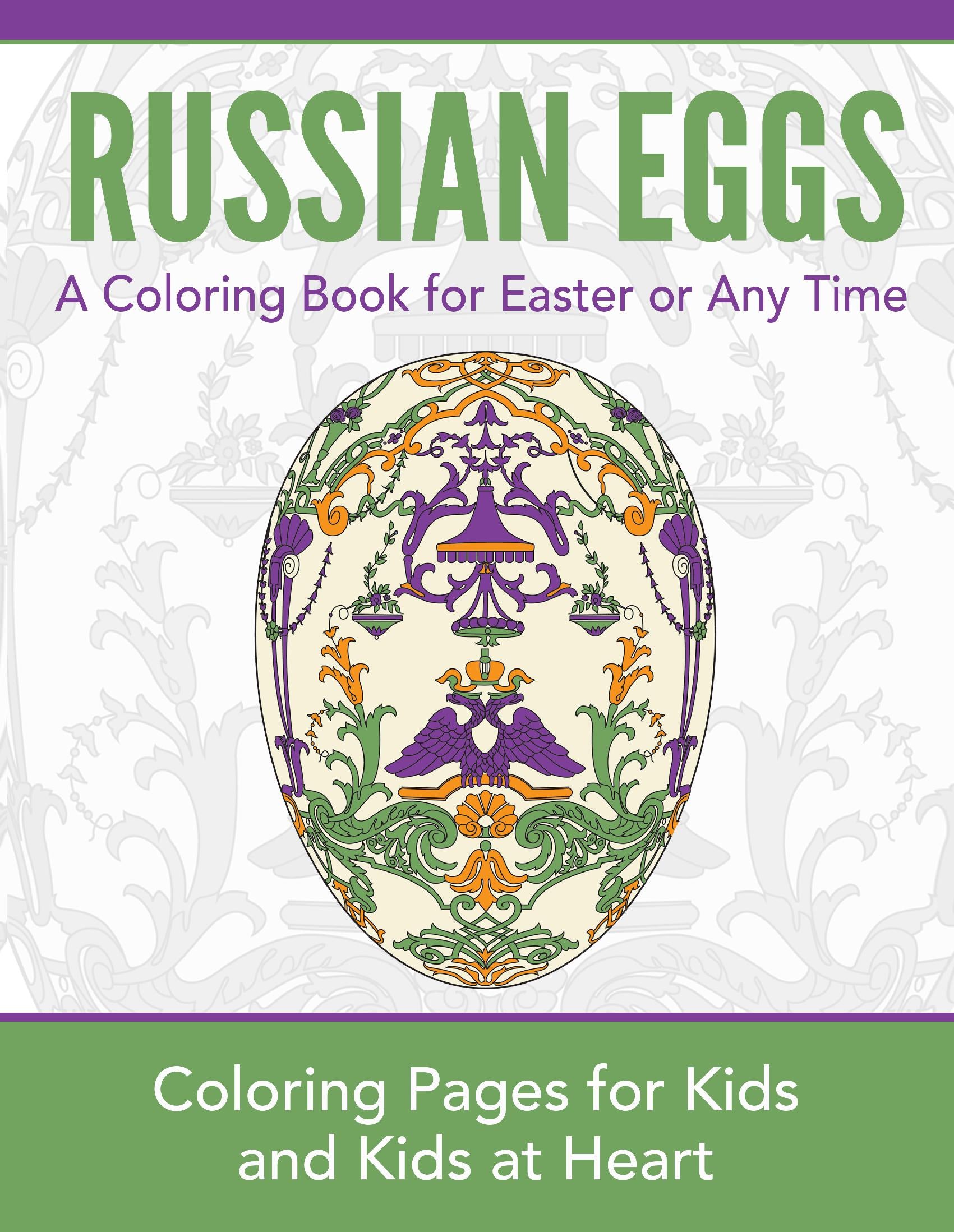 Now, for Easter or any time of the year, kids of all ages will enjoy coloring these beautiful eggs drawn from authentic Russian egg designs.